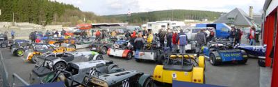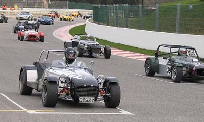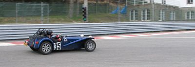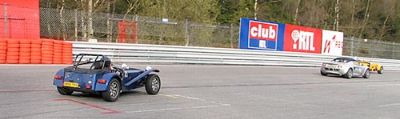 The race itself was great fun. The predicted happened and as soon as we reached Kemel Straight the more powerful car behind me came past and then sort of held me up in the twisty bits for the rest of the lap. This was the pattern of the race really, and I don't think I actually passed anyone. Some of the much faster cars that had been in the wrong place on the grid obviously came past. One of the danger parts of such an event is braking into the back of the car infront. One of my best areas on the lap had been very late braking at the end of Kemmel Straight and into the Bus Stop chicane, but in the race itself it was just too risky doing this when there was a car 2 ft from my nose. They would usually brake far earlier then I wanted too, and I was not prepared to dive down the inside - in fact this was forbidden in the briefing anyway, and no one risked this manoeuvre - like I said, safety was a priority for everyone in what was supposed to be a fun amateur event.