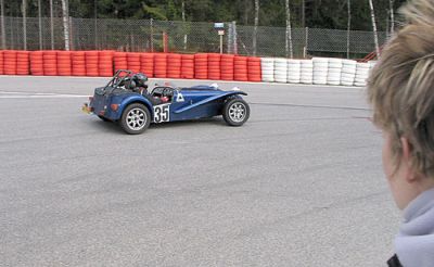 The 25 minute race flew by, and was in fact red flagged about one lap from the end. Unfortunately one of the very powerful fast cars - a 280 PS VM with a supercharged 2l Ford engine - had an incident somewhere just after Pouhon. The car suffered frontal damage but the driver was fine (having a pee against the Armco as I passed him anyway!) The only other incident was a racecar that lost his rear wing into the bustop.