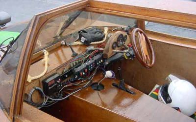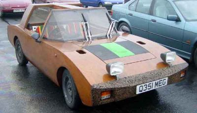 Hand built wooden car, as seen at Elvington. Note the cork bumpers!