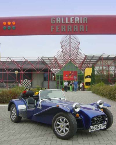 Maranello -Italy Ferrari fan or not its a good place to visit - it oozes motoring history, even if Maranello is a rather dull small industrial town. We spotted a disguised Enzo and Tessa got driven in a Ferrari round the hills where they test. This is the Galleria Ferrari - a museum to the marque. Great cars inside.