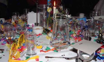 One of the few pictures from the Annual and notorious Surrey Christmas meal, 2003. There was once food on this table, now it has been replaced by ½ ton of confetti and plastic toys!