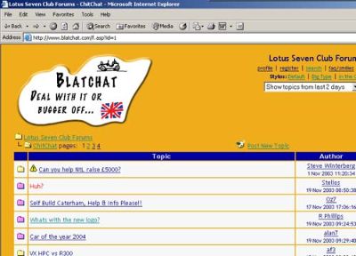While I was working with Barry on this, there was a lot of un-necessary flack on Blatchat about aspects of the Club administration and Blatchat itself. I sent this variation of the logo to Barry as a joke - he put it on the website temporarily as a 'teaser'!! It summed up the mood at the time.