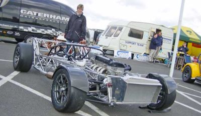 Tessa next to the CSR race chassis - in the background you can just about see Hugh of Cadence, who were also present at the Festival.