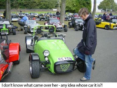 For those who use Blatchat - this car belongs to 'Nemesis'! This picture was posted there after the festival! (obviously Tessa is not really kicking another 7!!)