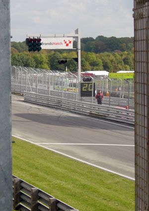 Start line at Brands, just before the start of a race - just out of shot the cars are forming on the grid after a warm up lap.
