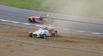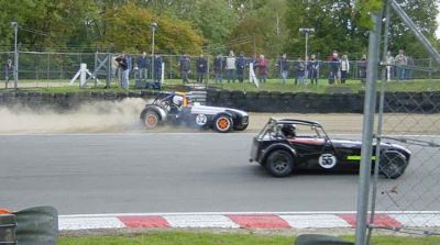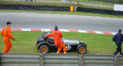 Of course occasionally it does go wrong! This car has beached right at the bottom of the hill, as the cars on track stream past and on up to Druids.