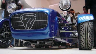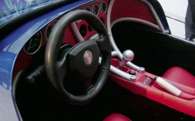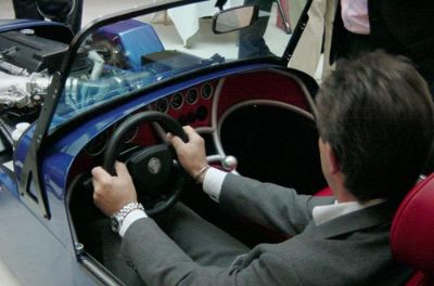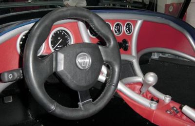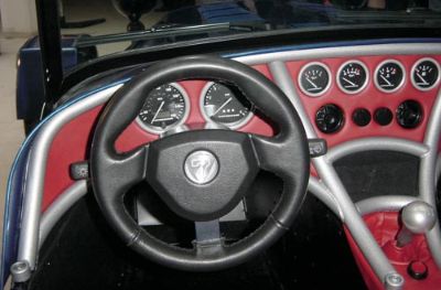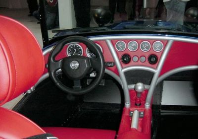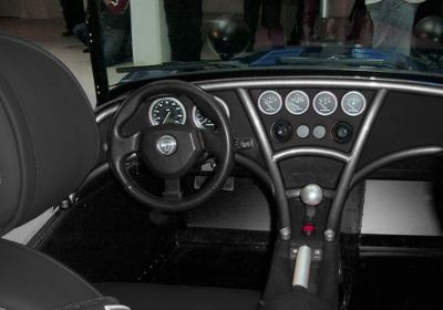 The blue car shown here is the more road orientated car, with the OPTIONAL dash, which bolts on to the chassis. The silver car was shown with a more 'normal' (to us) carbon dash and stack system. The blue car is shown with items (such as the massive exhaust cover) which will be required for sale abroad.
