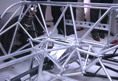 Rear chassis structure has obviously changed considerably with the new IRS system, losing the De Dion tube and gaining more struts and braces.