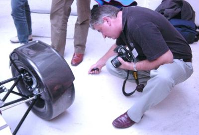 Mark checks to see if this front wheel is bolted on, unlike the nearside rear rear!