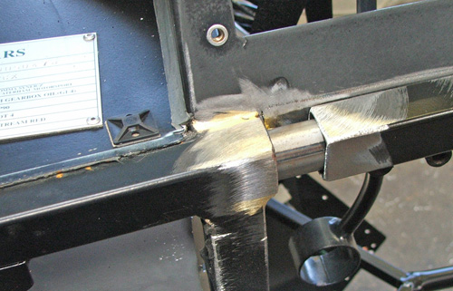 Now, due to the method of construction, it is very easy to repair these chassis. Any damaged tubes are simply cut out and a new one is jigged up and brazed back in, with no detrimental effect to the chassis or its integrity. The obvious places that Bruce looks at is the rear ‘cage’ – the thin tubes that hold the rear panel and fuel tank – these are usually pretty bad as they are constantly exposed to the elements and stone chips etc, as well as jacking damage. Similarly, the front lower cross-member is usually a bit pitted and perhaps dented from jack use, and general road wear and tear. This was certainly the case on our car, as you would imagine!