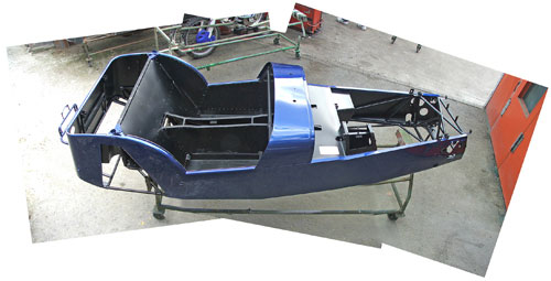 When I arrived to see the finished results the chassis was sitting outside in the sun, and looked stunning. The flat side panels of a Caterham will show up any slight imperfection in the paint – of course it all looked perfect. One interesting thing I noticed was how the fully powder coated chassis and internal panels made the blue look darker on the chassis panels. Initially I was worried that perhaps we had specified the wrong paint colour, or that it wasn’t quiet right. Of course, I was mistaken – when we assembled the car I had forgotten to pick up the new fuel cap insert (the coloured disc) so initially we used the old one, with the ‘original’ blue paint – the match was perfect!