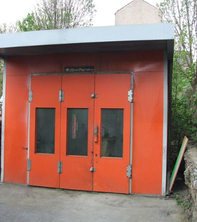 We had booked our slot with Tony a few months before when we originally arranged the rebuild with Bruce, so we were able to paint the car very quickly after Arch had finished with it. Bruce delivered the car to Tony, and I called in to see it before they started, meet Tony and take some pictures. I also dropped off our wings and nose cone which would also be re-sprayed. I left a digital camera with TSK so they could take some pictures of our car when they started work on it, and most of these great pictures printed here were taken by Tony or Michael as they worked, so many thanks to them!