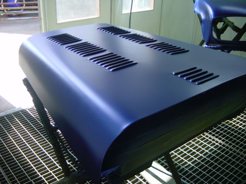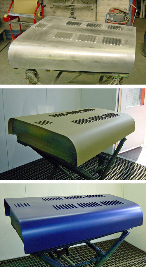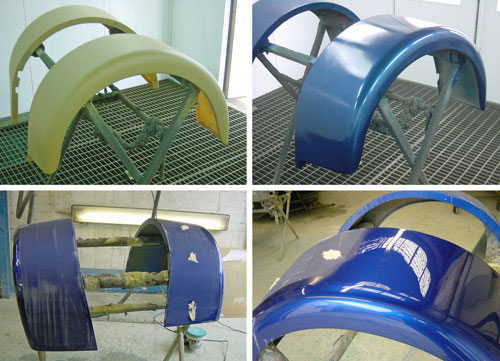 As he always does, a few days later Tony delivered the finished job once it had gone through its final polishing and setting stages. The anticipation as the TSK van turned up outside Marks garage was great – our car had returned!! As the doors opened, there she was! Only 3 or 4 weeks after we sent off the bare, scrappy, rusty chassis to Arch, our car was back, newly powder coated, freshly panelled and now beautifully painted in our familiar blue!!