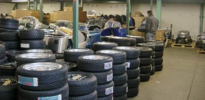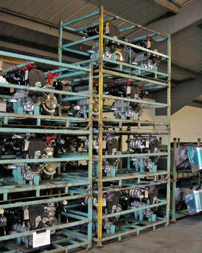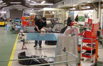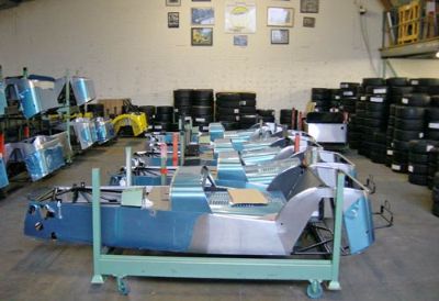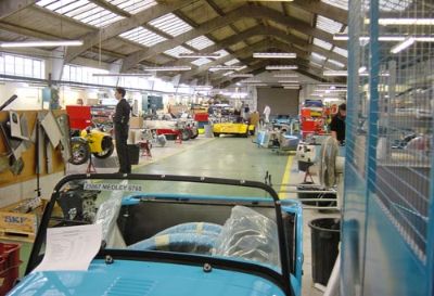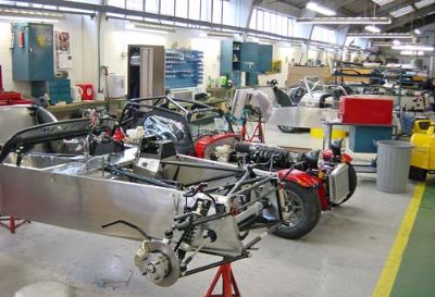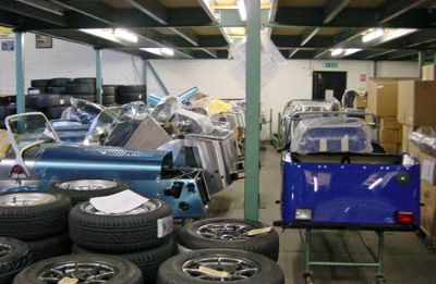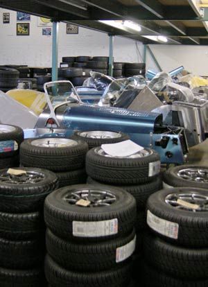 First port of call was a storage area to the side of the assembly factory, where kits, chassis, engines, parts and tyres are stored. Oh for a 'Supermarket Sweep' opportunity in here!