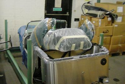 These chassis are kits, ready to be sent out to eager customers. Wings are wrapped up and can e seen in the cockpit. Many of these particular kits are off abroad, many to France.