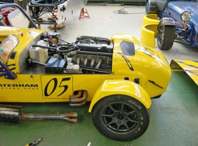 New CSR race car is in for a few repairs and tweaks. This is the car that Mark and I saw at the CSR launch, and one that has been used as a race development car.