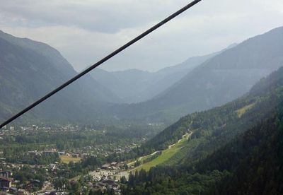 | Montage looking down from Plan de L'Aiguille across to Le Brevent and over Chamonix itself. |