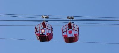See how small the cable car looks - and see where it is heading - along one single span of cable....