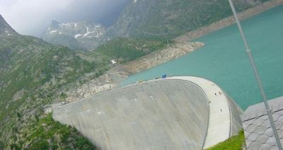 At the top was the 'Barrage d'Emosson' - a hydroelectric dam. Unfortunately just as we got to the top the clouds came down and it started to rain heavily, so we turned right around again...