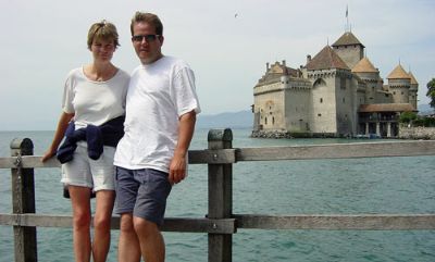 On the shores of the Lake, with Chateau de Chillon in the background.