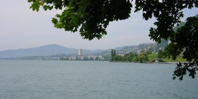 View from Villeneuve across 'Lac Leman' towards Montreux. I thought it was called 'Lake Geneve', but that is what it says on the map here!