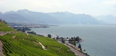 We drove around Montreux and headed away from the north shore of the lake. You can see all the vines facing south.