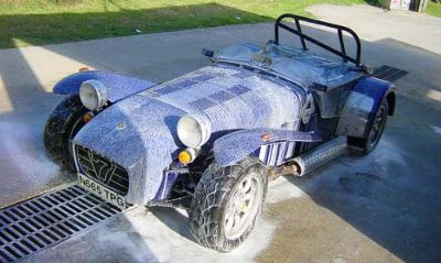 We cheat when it comes to washing the car on holiday - we use the jet-wash stations that can be found outside every French town!