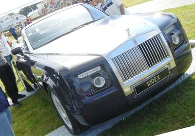 The Rolls Royce concept car - the 100EX - an amazing open top version of BMW's huge Rolls Royce saloon. The windscreen surround and bonnet were machined out of a single billet of aluminum!