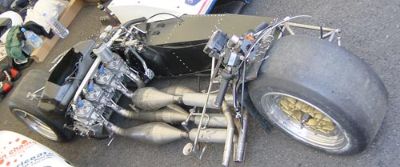 Amazing motorbike/sidecar combination race machine, without the body. I guess the driver lies over the exhausts, and just look at those slicks!