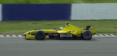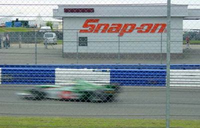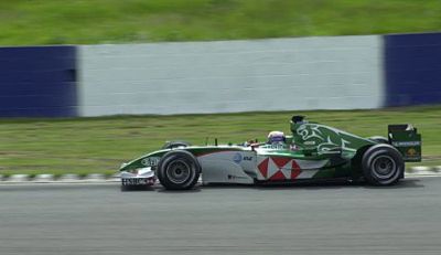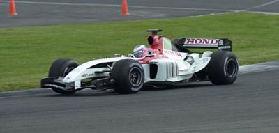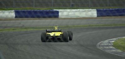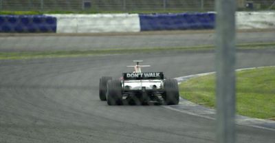 As I said, the Jordan cars looked evil on track. There seemed to be no consistency from lap to lap as the drivers seemed to be fighting at every bend, and even on the straight sometimes! I have 2 film clips of the Jordons getting it all wrong at the very highspeed Copse corner at the end of the main start/finish straight. On one of them the car misses the apex by metres and proceeds to run very wide into the dusty outside of the corner exit - you can hear the driver get off the gas and try and keep it on the track, which he did. On the second clip again you can see the car run very wide, but this time leaving two thick black lines as the car struggles to put the power down. The top cars, the BAR, Ferrari, Williams etc made the corner look easy, with inch perfect running as if on rails.