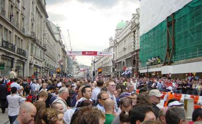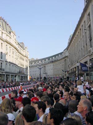 As part of the publicity build up before the 2004 British GP a demonstration run was arranged in central London. Several F1 teams turned up with their cars and drivers to complete a short circuit which included Regent Street and Piccadilly Circus. As you would expect the crowds were massive - too big really, as concerns about crowd safety led to a long delay before things started, and an earlier finish as well. They think there were between ¼ to ½ a million people lining the streets. The GP a few weeks later sold a maximum of 150,000 tickets!!