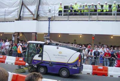 After about an hour standing 5 deep on Regent Street the first vehicles came past - 3 road sweepers. It would be another 40 minutes before an F1 car came through.
