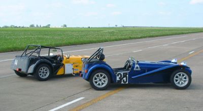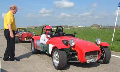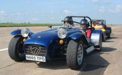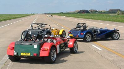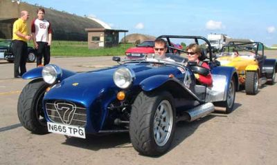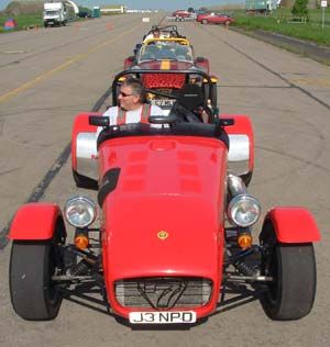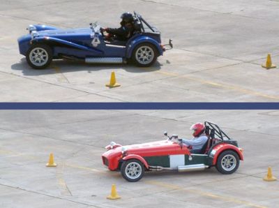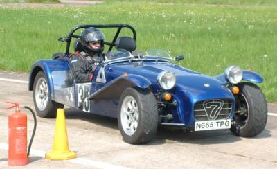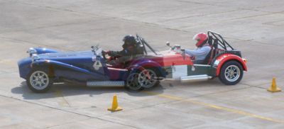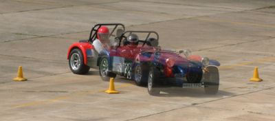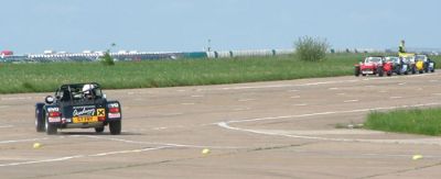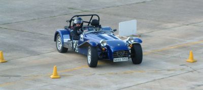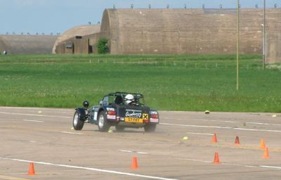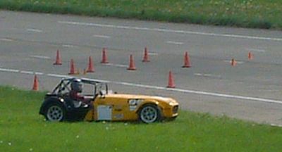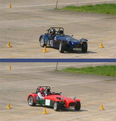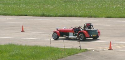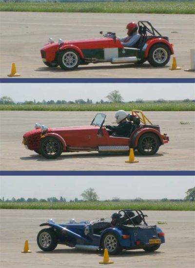 We were put into groups so that we could run through all the individual 'events'. The Caterhams were put together, as we all knew each other, and because the cars would all perform similarly, making instruction easier. This sort of event is ideally suited to Caterhams - understandably they were easily the quickest cars around such courses. Here we are all lining up for our first slalom course. Driving between off-set gates we also learn about the importance of a good driving position. Again, we were at an advantage as the Caterhams position is pretty much spot on already!