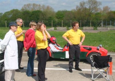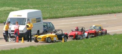 Other members of this group wait while the caterham Academy car slides round the oversteer corner.