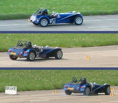 Third event we took part in was an emergency stop exercise. This involved driving flat out towards a cone gate, and then braking heavily to a stop into a curve laid out in cones. An exercise in cadence braking and controlling the car as it tried to lock up and slide.
