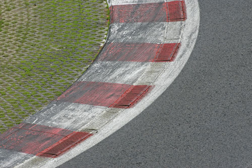 Another picture from Mark shows us dwarfed by Eau Rouge. The new tarmac on the left makes the corner look much bigger than it is - from the car it looks much steeper, and the kerbs look much closer!