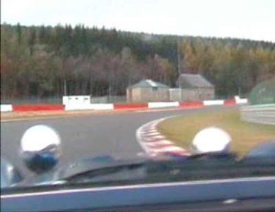 Passing a slower car into Malmedy - unusually this car had indicated and waved us through! Although wet/damp the track was pretty progressive here with no nasty surprises, unlike the next couple which were always greasy! This was my chance down into Rivage 1. I knew I was braking much deeper into corners, and this downhill right was my best chance to past. Now I know that its a slightly dodgy move, but we had been behind for a few laps, knew what we were going to do, and gave plenty or warning as to our intention - honest! So through we slipped. We entered Rivage 1 a little quicker than I would of liked perhaps (!) but no drama, a little correction and we were off on our way.....