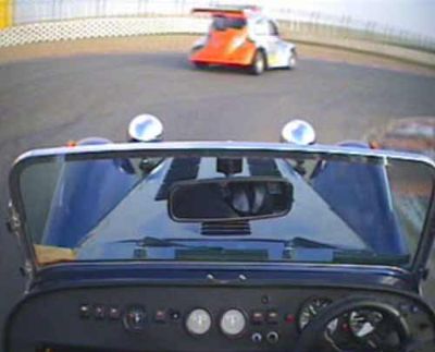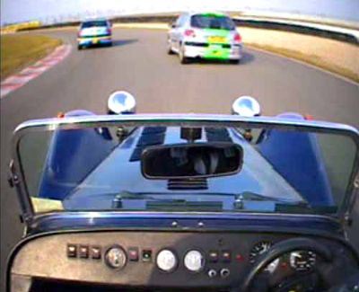 Still from our Bullet Cam. Usually we are in sessions with single seaters, but on a quiet day you can find yourself sharing the track with real race cars such as these 206 cars, with slicks and full cages.