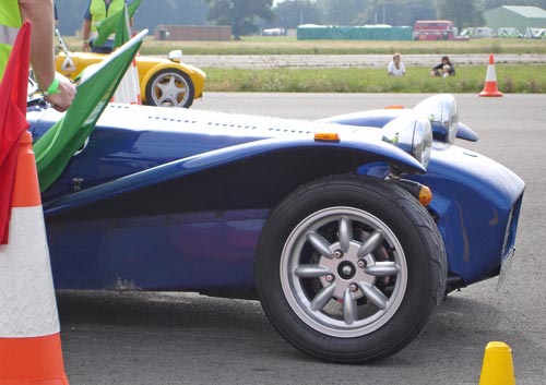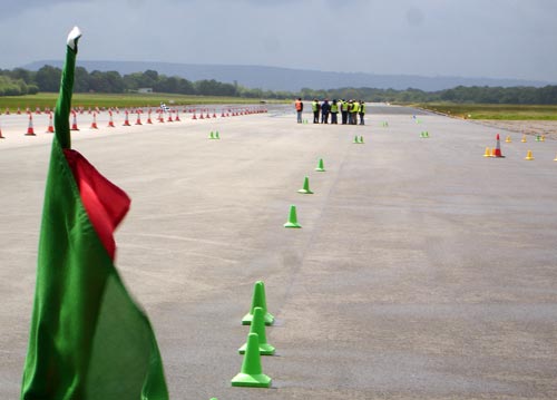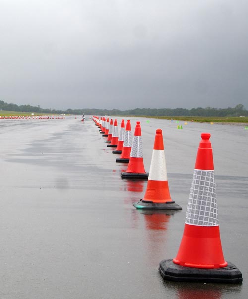 There are usually 2 runs up the runway, next to each other - one is a 0-60 where you can strap on some timing gear and see how well you can do, and running in parallel, a slalom - where once you remember where you go, you can get faster and faster throughout the session - especially if the track dries out. The frame on the car is a tyre rack, and it provided a great platform to hang my bullet cam off and get some unusual angle shots from.