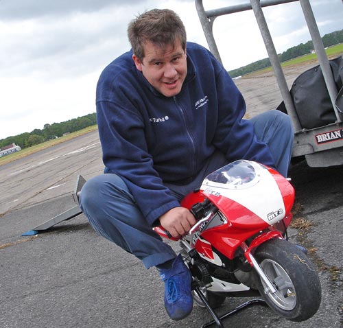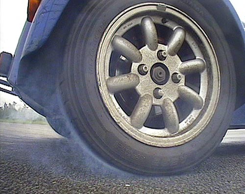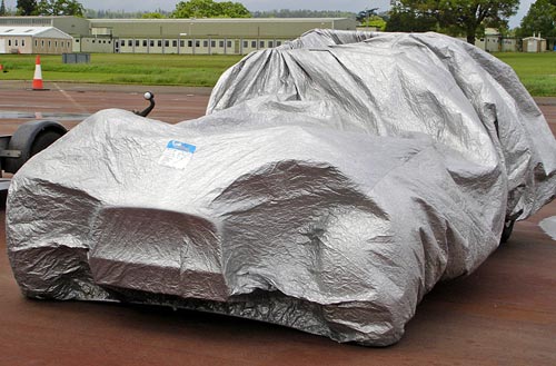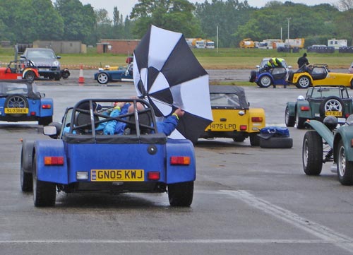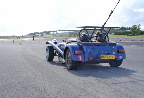 | This is a still from an on-board movie showing the rear wheel spinning. | |  | Note the ludicrous, boom-mounted, bullet camera position! | |  | Wet n' windy! | |  | Adil well wrapped up against the sun...sorry, rain. | |  | Arnie has installed a tennis ball launcher under his bonnet...not sure why?! |