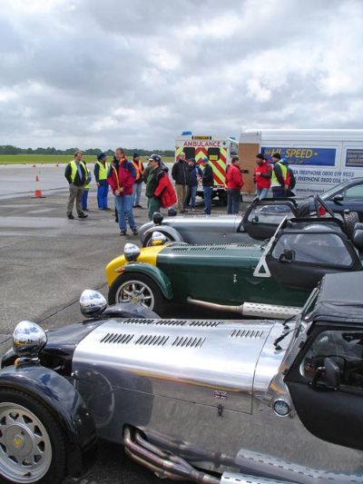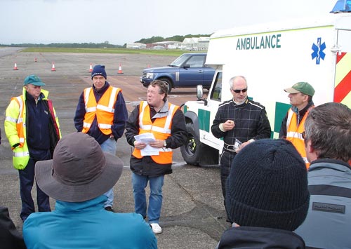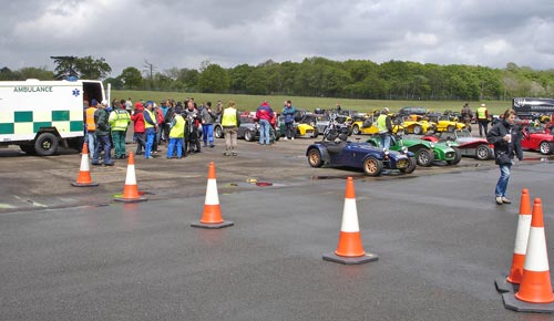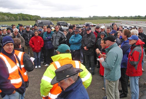| Steve Mell, the organiser of these days, gives a thorough briefing before each session, detailing the order of the day and most importantly, safety. | |  | A motley band of Club members volunteer as marshals to support Steve and make the day possible. |