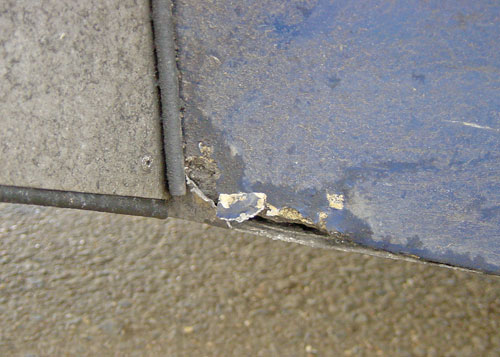 | Evidence of Chris's spin into the infield! | |  | Evidence of need for a rebuild! | |  | That patch under the car is not actually from our car! |