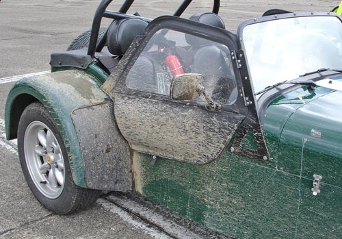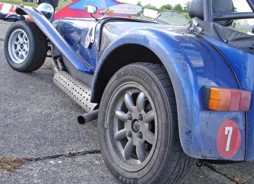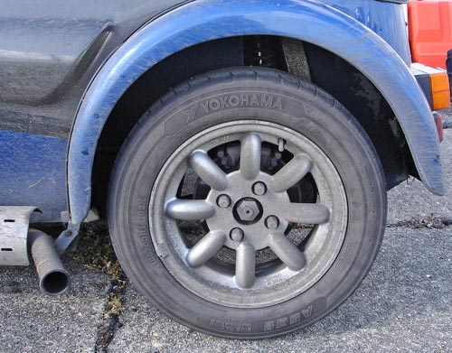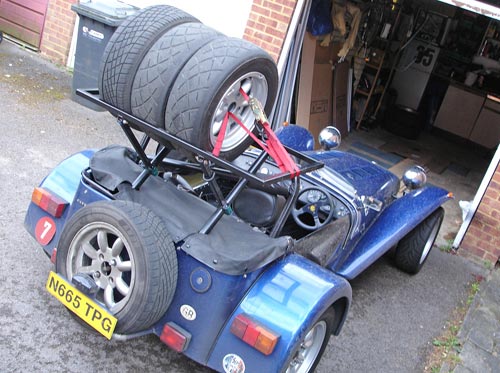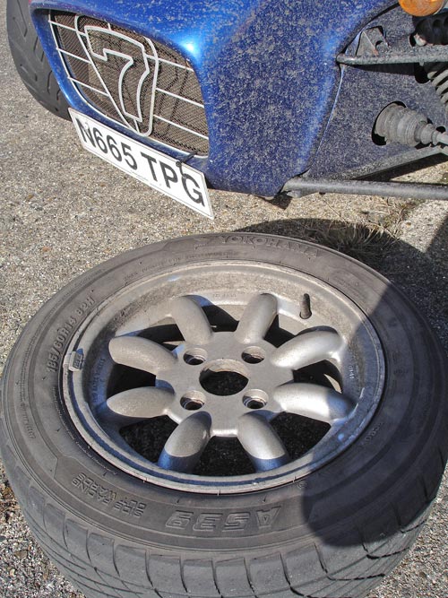 | More filth = more fun!! | |  | Once again, notice the rubbish tyres on the back of the car. | |  | End of the day and its all change for a legal set of tyres and the run home. | |  | |  | Home again, with some seriously worn tyres and some cleaning to do! |