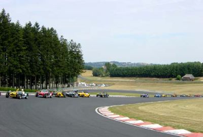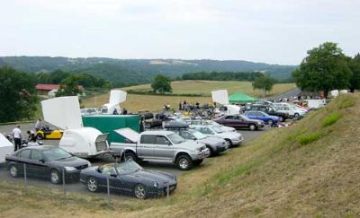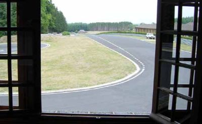 The paddock area for Le Sept. A great view of a large proportion of the track from here. The real pits are below on the left, whist the track returns behind me on the right.