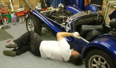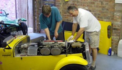 Mark helping yet another 7 owner (Andrew) with his car - note the next car lined up and ready to come in!!