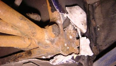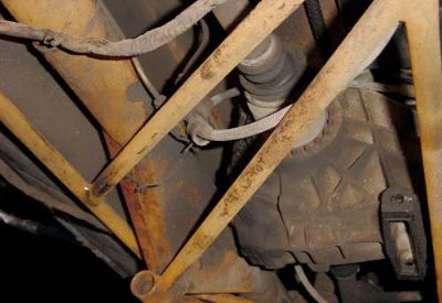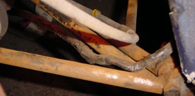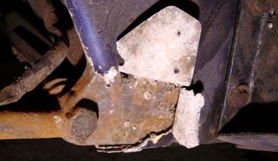 Rear section of chassis, showing oxidizing reaction between aluminum and steel parts.