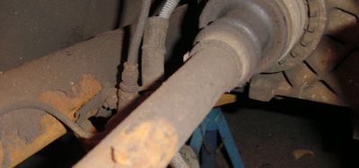Half-shaft and De-Dion tube, showing how the paint flakes off to expose the rust below.