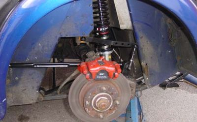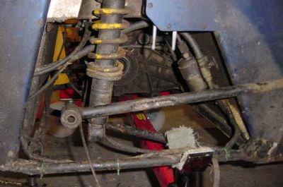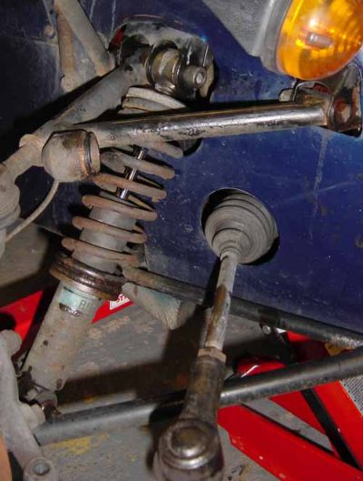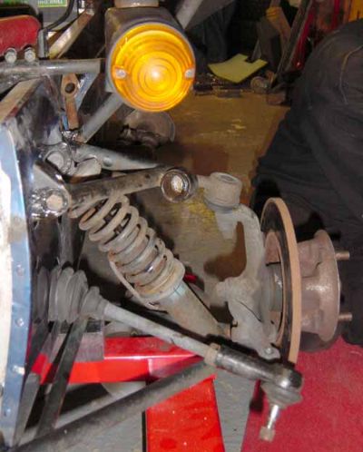 Gradual dismantling continues - here the brake caliper has been removed, anti-roll bar removed and steering arm has been un-bolted from the hub assembly.