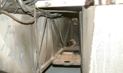 Front of the engine bay. Small brownish bracket mounted on the chassis cross-members is actually for the Apollo tank.