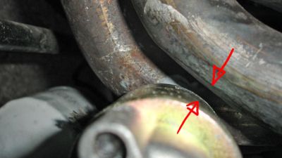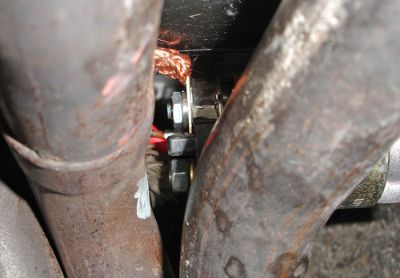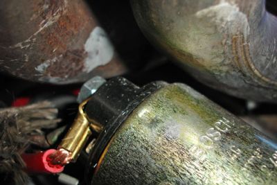 ...however in this case the pipe is very close to the wire connections on the starter motor. This is a bit dangerous - it means that you must be VERY careful that there is not contact between the two...